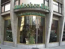 Frankfurter Rundschau Druck and Verlagshaus GmbH filed for bankruptcy on 12 November 2012.[2][3] Then the paper was acquired by Frankfurter Allgemeine Zeitung and Frankfurter Societät (publisher of the Frankfurter Neue Presse) in 2013, by taking over just 28 full-time journalists.[4] The FR editorial board continued to be bound by the legacy of Karl Gerold and the commitment to a "left-liberal" political line, and was integrated in the national and international editorial and correspondents network of the DuMont Mediengruppe, the former majority owners. The private foundation managing Karl Gerold's legacy still owns 10% of the shares. But all commercial activity of the paper, printing, selling advertisement and distribution was put in the hands of the Frankfurter Societät. The FR printing enterprise was closed. The contracts for printing BILD-Zeitung and other papers went from the FR's printshop to the FAZ's Societätsdruckerei.