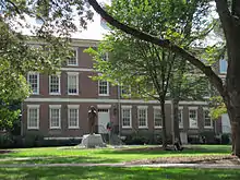 Old College is believed to have been patterned after Connecticut Hall at Yale University.[6][7][8] Like other founders of the university, Abraham Baldwin, the university's first president, was a Yale alumnus, as was Josiah Meigs, who served as the university's second president.[9] Entrance requirements to Franklin College were patterned after Yale with attention paid to proficiency in Latin and Greek.[10] The college's classical curriculum also duplicated Yale's with its emphasis on Latin, Greek, Hebrew, mathematics, and philosophy.[11]