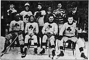 Arnprior Shamrocks in 1909–10. Kelly is seated second from right in the front row.
