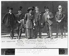 When Welsh returned to America he was intent on fighting Ritchie, having failed to meet both Nelson and Wolgast. He employed the services of Harry Pollok, one of New York's most flamboyant sports impresarios.[101] When Welsh and Fanny arrived in New York on 29 March 1913, Pollok was there orchestrating the reporters and photographers.[101] Even with Pollack's help Ritchie was difficult to commit. Champions tended to stick to the East Coast, fighting in six round contests where the 'no-decision' contests meant the only way the title could be lost would be through a knockout.[102] When Welsh arrived in New York, Billy Dolan, Ritchie's manager, announced that the champion would not be fighting for four months as he was touring Europe to fulfil theatrical commitments.[102]