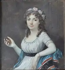 He was born in c. 1760 and, according some sources,[2] was a pupil of Johann Heinrich Schröder (1757 - 1812) and debuted as pastellist in the “Salon (Paris) de la Correspondance” of the 1780 with the portraits of Charles Juste de Beauvau, Prince of Craon and Comte Mimerel. His first miniatures can be dated to the mid-80s of the 18th century. He was active in Paris until 1804 where he was the court painter of Louis Joseph, Prince of Condé and lived in rue Neuve des Petits Champs, 414 rue Neuve Saint Marc, 549 rue de Grammont, 27 place des Victoires. In the following years he worked in Saint Petersburg. There, as most sources state, he stayed until 1818 and in 1813 he was granted membership of Saint Petersburg Imperial Academy of Arts.[3] In 1819–1820, he was exhibiting in different London locations but above all in Royal Academy. In England he lived in London, 22 Vine Street and then in 9 Panton street near Leicester Square an area of the city known as an entertainment venue preferred by foreigners and where the great portrait painter Joshua Reynolds lived until 1792. Probably he died in c. 1822. During his stay in Saint Petersburg, very appreciated by the court of Alexander I of Russia, the artist taught at the Imperial Academy of Arts and painted a great number of portraits of royalties and aristocrats. He also portrayed French expatriates living in Russia's capital. His works of this period can be viewed in Moscow Pushkin Museum and Tretyakov Gallery, in Saint Petersburg Hermitage Museum and other Russian museum collections.[4] Frederic Dubois not only painted in miniature, as can be seen in the oil portraits of two sisters from the Poilevé de la Guerinais Breton family in Rennes[5] or in the portrait of a scientist with the Legion of Honor,[6] but was also a printmaker and produced royalist caricatures now in the British Museum.[7]