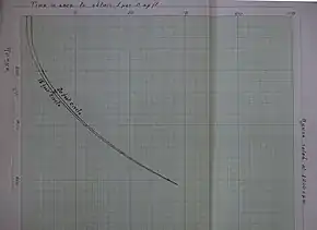 The graph prepared by Hill in his own handwriting.[15] Note the addition in pencil at 280 yards. For more see article on Gun harmonisation