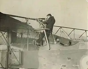 F.W. Hill testing a collapsible gun platform fitted to a Short Type 184 seaplane in 1917