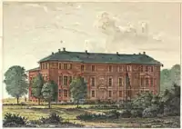 Helbredelsesanstalten for idiotiske Børn, also referred to as Idiotanstalten, was founded in 1855 and originally based in the nadkacent property Bakkehuset. Its new building was built 18591860 to design by Ferdinand Meldahl.[1][2]