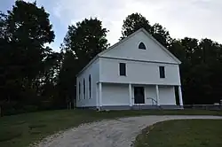 The Free Will Baptist congregation in Auburn dates to 1808, and had grown by the late 1820s to a size sufficient to warrant construction of a church. This building was erected in 1833, although its initial interior features are not known, many records having been destroyed by a fire. As a result, it is also not known exactly when the interior decorations were made, which are stylistically from the Queen Anne period. The church's congregation had declined in the 1880s to the point where services were held only sporadically, and came to an end around the turn of the 20th century. The building was briefly used by another congregation in the 1950s, and was rescued from demolition by local citizens who formed a non-profit to oversee its preservation. Services are now held annually, and the building is well maintained.[2]