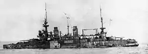 During exercises off Golfe-Juan on 31 January 1903, Gaulois accidentally rammed Bouvet. The latter was barely damaged, but Gaulois lost two armour plates from her bow; both captains were relieved of their commands.[12] Captain (Capitaine de vaisseau) Pierre Le Bris assumed command of Gaulois on 20 March.[13] In April 1904, she was one of the ships that escorted Loubet during his state visit to Italy. Later that year, the ship made port visits in Thessaloniki and Athens, Greece, with the rest of the Mediterranean Squadron. A wireless telegraph was installed aboard Gaulois in December 1905. Together with the battleships Iéna and Bouvet, the ship aided survivors of the April 1906 eruption of Mount Vesuvius in Naples, Italy. On 16 September she participated in an international naval review in Marseille, together with British, Spanish and Italian ships.[14]