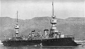 Bruix, named after Admiral Étienne Eustache Bruix,[7] was laid down at the Arsenal de Rochefort on 9 November 1891. She was launched on 2 August 1894 and commissioned for trials on 15 April 1896. The ship was temporarily assigned to the Northern Squadron (Escadre du Nord) on 24 November for the visit of Tsar Nicholas II of Russia and his wife to Dunkerque on 5–9 October. The ship's steering broke down on 7 October and she had to return to Rochefort for repairs. Trials lasted until early December and Bruix was officially commissioned on 15 December and assigned to the Northern Squadron.[8]