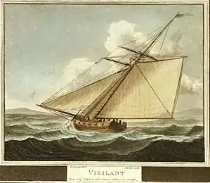 The next day, His Majesty's sloop Cygnet was anchored at Prince Rupert's Bay, Dominica, when Robert Bell Campbell, Cygnet's captain, received information that a cutter and a schooner were nearby. He immediately made the appropriate signals to HMS Wasp, which was entering the bay.[3]