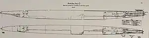 ![]() Profile and plan views of Y's hull, detailing the torpedo system | |