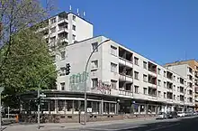 The Friedrich-von-Raumer-Bibliothek (Friedrich von Raumer Library) is a public library in Berlin. It was founded in 1850 and is located in Berlin's Kreuzberg locality on Dudenstraße.[1] After several moves the library found its current location in 1955 in a block of flats of the services trade union Ver.Di by Franz Hoffmann and Max Taut.[1] The library is located in the rotunda, westerly protruding from the block of flats, and in the ground floor of that block. The Raumer Library is a so-called neighbourhood library (Stadtteilbibliothek) within the Stadtbibliothek Friedrichshain-Kreuzberg (city library of the Friedrichshain-Kreuzberg borough), and as such part of the Verbund der Öffentlichen Bibliotheken Berlins (VÖBB), the network of public libraries owned by the city-state.[1]