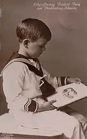 In May 1943, a family council was called by the Grand Ducal family and Friedrich Franz was passed over as heir in favour of his younger brother Duke Christian Louis, who would instead inherit the family property.[1]