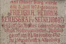 Friedrich Heinrich Reichsgraf von Seckendorff[1] (5 July 1673 23 November 1763, aged 90) was a Franconian field marshal and diplomat, in the service of the imperial Habsburg monarchy of Austria. Later he served as commander of the Bavarian army and fought Austria.