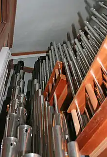 Frobenius Orgelbyggeri (Th. Frobenius & Sons / Th. Frobenius & Sønner Orgelbyggeri A/S) was founded in Copenhagen by Theodor Frobenius (1885–1972) in 1909. The firm moved to Lyngby in 1925. Theodor's sons Walther and Erik joined the company in 1944, at the same time that they began to build organs in the classical tradition, with mechanical actions and slider windchests. They build organs with characteristic modern casework, usually arranging the pipework of each manual such that three to six repeating arrangements of front pipes are shown in the façade. Their organ development after 1925 was in the style of the Organ Reform Movement and neo-classical design.[1]