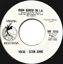"From Denver to L.A." is a song written by Francis Lai and Hal Shaper, and performed by English musician Elton John. It was released on the soundtrack of the 1970 movie The Games.[1] The song was released as a single in the U.S. in July 1970, miscredited on the record label to "Elton Johns".[2]