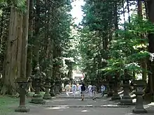 Fuji-ko members on the approach to Kitaguchi Hongu Fuji Sengen Shrine.