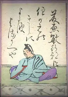 Fujiwara no Toshiyuki (birthdate unknown – 901 or 907, Japanese: 藤原 敏行, also 藤原 敏行 朝臣 Fujiwara Toshiyuki no Ason) was a middle Heian waka poet and Japanese nobleman. He was designated a member of the Thirty-six Poetry Immortals and one of his poems is included in the famous anthology Hyakunin Isshu.