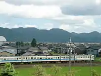 A JR West train passes through Fukuoka town on the Hokuriku Main Line.