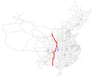 The Yinchuan–Baise Expressway (Chinese: 银川–百色高速公路), designated as G69 and commonly referred to as the Yinbai Expressway (Chinese: 银百高速公路), is a partially completed expressway in China. It is a major north-south expressway that when complete, will connect the cities of Yinchuan, the capital of Ningxia, with Longbang town in Baise, in the autonomous region of Guangxi. In the border, the expressway connect to Quảng Ninh–Cao Bằng expressway in Vietnam. The expressway was announced as one of the eleven primary north-south expressways in China's expressway network on 24 May 2013.[1]