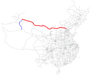 The Beijing–Ürümqi Expressway (Chinese: 北京-乌鲁木齐高速公路), designated as G7 and commonly referred to as the Jingxin Expressway (Chinese: 京新高速公路) is an expressway that connects the cities of Beijing, China, and Ürümqi, Xinjiang. It opened in July 2017[2] measuring 2,540 km (1,580 mi) in length.[3] It is noted for being the world's longest desert highway, passing through several deserts part of the Gobi Desert, such as the Ulan Buh Desert, the Tengger Desert and the Badain Jaran Desert.[4]