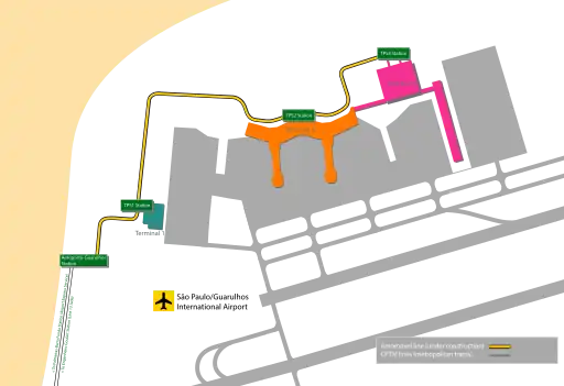 5. 1 2 Meier, Ricardo (21 August 2019). "People Mover do Aeroporto de Guarulhos segue indefinido e sem prazo de início" (in Portuguese). Metrô CPTM. Retrieved 21 August 2019.