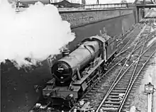 6990 Witherslack Hall is a steam locomotive. It was built at Swindon by British Railways to a Great Western Railway design in 1948. It took part in the 1948 Locomotive Trials, on 24th and 25 June 1948, running on the Great Central Main Line from Marylebone.[1]