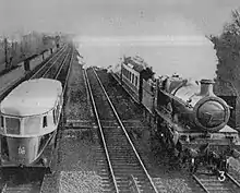 Soon after this, the GWR ordered the next three production units, Nos. 2 to 4, which were built with two engines (instead of one) which allowed them to reach a maximum speed of 80 mph (130 km/h), and included a buffet. These units were delivered in July 1934 and entered service on 15 July 1934 between Birmingham Snow Hill and Cardiff General. This was the first long-distance diesel express service in Britain, and covered the 117.5 miles (189.1 km) miles between Birmingham and Cardiff in 2 hours 20 minutes. This was intended as a businessman's service; fares were charged at the normal rate, although bookings were limited by the 44 seats of the railcar.[3]