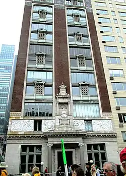 At various points in the building's history, residents included artist Montague Flagg, sculptor William Ordway Partridge, and travel writer Thomas Allibone Janvier,[5] as well as artist Enrico Donati.[25] One resident of the Gainsborough Studios in the 1910s, John Hemming Fry, became a vice president of the Gainsborough Studios corporation and subsequently developed the nearby Rodin Studios using his experience from the Gainsborough Studios.[26] During the 1950s, another resident, Donald Deskey, led a renovation of the building's lobby. As part of the project, the ornate iron doors from the original design were replaced with aluminum doors.[5]