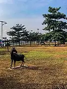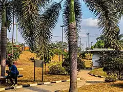 Gani Fawehinmi Park, formerly known as Liberty Park, is a public green space located in Ojota, Lagos, Nigeria just by the Lagos-Ibadan Expressway and Ikorodu Road Interchange, Lagos. The park was built in honor of the Nigerian human rights activist and lawyer Gani Fawehinmi to which a large statue of his was conspicuously placed in the middle of the garden. This statue measuring 44 feet tall was commissioned April 21, 2018[1] by the Lagos State Government. The garden also has little signposts that tell a brief story about his lifetime. Other sculptures, soft landscape and benches were incorporated to make the space attractive and befitting for relaxation and small events. It was the venue of the Yoruba Nation Rally that happened July 3, 2021[2]