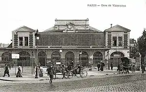 The Gare de la Bastille was a railway station on the Place de la Bastille in the 12th arrondissement of Paris, France. The station was opened in 1859 and served as the terminus of the 55-kilometre (34 mi)-long line to Vincennes and Verneuil-l'Étang. The line was opened only to serve the Fort de Vincennes; it was extended to La Varenne and later to Brie-Comte-Robert. The line finally reached Verneuil-l'Étang in 1892 and connected to the line to Mulhouse. Part of the line was included into the new suburban commuter rail line RER A on 14 December 1969. The station was demolished in 1984 so that the Opéra Bastille could be built.