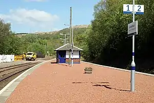 Garelochhead railway station (Scottish Gaelic: Ceann a' Gheàrrloch) is a railway station serving the village of Garelochhead, on the Gare Loch, in Scotland. This station is on the West Highland Line and is a boundary station for SPT. It is sited 8 miles 76 chains (14.4 km) from Craigendoran Junction, near Helensburgh, between Arrochar and Tarbet and Helensburgh Upper.[4] ScotRail manage the station and operate most services, with others provided by Caledonian Sleeper.