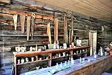 Architects/builders included Ole Dahl, who built Dahl Saloon (also known as Ole's and as "The Joint") and the Dahl House, Robert Moore who built Kelly's Saloon, Hugh Hannifen who built Hannifen House, Judson and Blaidsell who built the F.A. Davey Store, and John and Winifred Wells who built the Wells Hotel.[2] Supplies needed in Garnet were generally obtained from nearby Bearmouth.