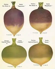 Swede varieties bred and introduced to UK agriculture include Zero in 1900, Lord Derby (1900), Perfection (1900), Monarch (1900), Model (1900), Green Tankard (1901), Keepwell (1902), Cropwell (1903), Superlative (1905), Victory (1907), Incomparable (1907), Warrington (1914), Acme (1914), Magnificent (1917), Viking (1918), Feedwell (1922), White Fleshed (1933), Parkside (1951), Townhead (1951).