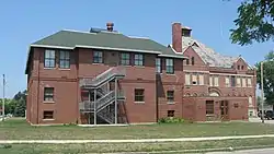 Gas City High School, also known as the East Ward School, is a historic school building located at Gas City, Grant County, Indiana, United States. It was built in 1894, and is a two-story, square, Romanesque Revival style brick and stone building. A two-story Prairie School inspired addition was completed in 1923. The two buildings are connected by a two-story "bridge".[2]:5