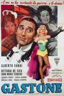 Gastone is a 1960 Italian comedy film co-written and directed by Mario Bonnard and starring Alberto Sordi, Anna Maria Ferrero and Vittorio De Sica. It is loosely based on the Ettore Petrolini's character and comedy play with the same name.[1][2]
