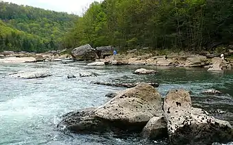 The Gauley River is a 105-mile-long (169 km)[3] river in West Virginia. It merges with the New River to form the Kanawha River, a tributary of the Ohio River. The river features numerous recreational whitewater areas, including those in Gauley River National Recreation Area downstream of the Summersville Dam.