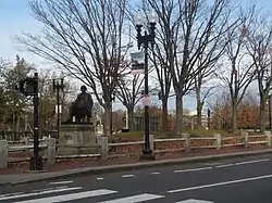 The park and statue of Charles Sumner in 2019