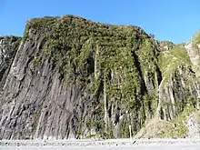Unconformably overlying the basement rocks west of the Alpine Fault is a terrestrial sequence that represents Zealandia's progressive movement away from Gondwana. The Hawks Crag Breccia formed from erosion off fault scarps.[11] It is also New Zealand's best source of uranium.[12] These are then overlain by coal measures formed in swamps from the continued extension. These include both the Paparoa and Brunner Coal Measures, which are being extensively mined.