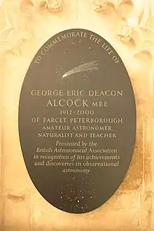 George Eric Deacon Alcock, MBE (28 August 1912, in Peterborough, Northamptonshire[1] – 15 December 2000) was an English astronomer. He was one of the most successful visual discoverers of novae and comets.