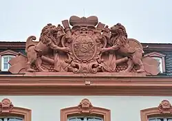 The city of Wiesbaden and the whole county of Nassau-Idstein had suffered badly during the Thirty Years' War and again during the plague in 1675. Only a few dozen of the original 1800 inhabitants were still alive.[4] Under George August both experienced an enormous upswing. He initiated a number of construction projects. He completed the residential palace in Idstein, he constructed the Herrengarten park and the Pheasants Park in Wiesbaden, he constructed a French formal garden on thebanks of the Rhine at Biebrich and he remodeled the City Palace at Wiesbaden. A garden house was the only part of the future Biebrich Palace completed during his lifetime.[5]