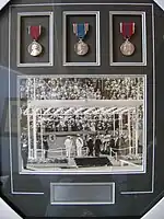 A framed collection of the medals received by George W Brain in recognition of his service to the NSW Government