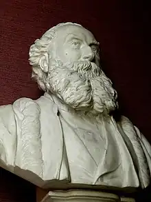During 1889, the last year of Dawson's life, William John Seward Webber completed a marble bust of Dawson,[30] and possibly also of his wife.[31] The bust of Dawson demonstrates that, even towards the end of his life, Dawson still sported "showy, elaborate whiskers", and he chose to model for the bust in his alderman's robe.[32] The bust was shown at the Royal Academy Summer Exhibition in 1891, and then given to Harrogate Corporation.[11]: 631, 632 As of 2014 the bust was in the possession of Harrogate Borough Council,[32] which also has a painting of Dawson.[33]