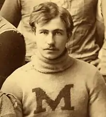 "The fall semester opened under the most favorable conditions for as fine an eleven as Michigan has ever had. Manager Charles Baird was particularly fortunate in securing the services of Mr. Macauley, tackle on Princeton's championship eleven of last year, as coach, and Mr. Keene Fitzpatrick, of Detroit's M.A.A., as trainer. The work of both these enthusiasts can be seen in the practice of the team from day to day. At a mass meeting held last month great enthusiasm was shown by the students, and several hundred dollars was raised for the team. Thus, for the first time in the history of Michigan football, the manager was enabled to secure the necessary equipment for a first-class eleven. Lack of money has been the cry hitherto."[9]