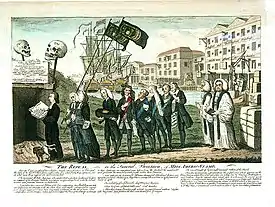 Grenville prosecuted John Wilkes and the printers and authors for treason and sedition for publishing a bitter editorial about King George III's recent speech in "The North Briton" a weekly periodical. After losing the case Grenville lost favor from the public who regarded the act as an attempt to silence or control the press.[15][19]