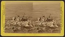 ![]() 1879 photograph of CPT George K. Sanderson examining the marker erected where COL Myles Keogh and most of his company died during Battle of the Little Bighorn | |