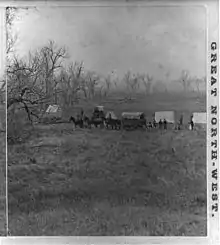 On July 26, 1874, the Commissioner of Indian Affairs, Edward P. Smith, instructed Colonel Davidson to enroll the non-hostile Indians at the Comanche-Kiowa agency by August 3, 1874. Davidson assigned Captain G. K. Sanderson to perform this duty in effect removing Indian Agent James H. Haworth almost entirely from the enrollment. Captain Sanderson first went to the Comanche village ten miles north of Fort Sill, Indian Territories, where he enrolled the bands of Horseback, Quirts Quip, and Cheevers. The next day he went to the Kiowa camp but Kicking Bird could not get enough of his men for enrollment. Captain Sanderson told Kicking Bird to bring his men to the agency the following day for enrollment. The Kiowas came on August 3, but Ma-ye-tin, or Woman's Heart caused enough trouble that Captain Sanderson wanted him arrested but agent Haworth was against it. On August 8 the Yamparika were enrolled under the supervision of Captain Sanderson.[3][4][5][6][7][8][9][10]