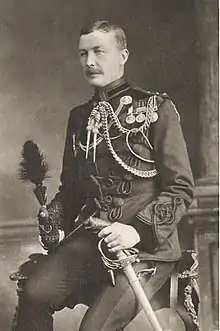 Evacuated to Britain to recover from his wounds, Thesiger attended the British Army Staff College, from which he graduated in late 1902.[9] On 7 May 1902 he was appointed a deputy-assistant adjutant-general for Musketry,[10][11] and until 1906 was in charge of musketry practice on Salisbury Plain, for the 2nd Army Corps. From there he moved to Ireland to work as Assistant Military Secretary to the General Officer Commanding in Dublin until 1909.[7] From there he was assigned to colonial service as the Inspector General of the King's African Rifles and in 1913 was dispatched to India as a lieutenant colonel to command the 4th Battalion of the Rifle Brigade.[12] In 1913, in reward for his distinguished service, he was appointed a Companion of the Order of St Michael and St George,[13] and the following year was also made a Companion of the Order of the Bath.[7]