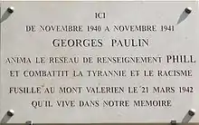 In July 1940, while he was an engineer at Avions Kellner-Béchereau, Georges Paulin began working with British Intelligence to fight the Nazis. Discovered by the Gestapo, betrayed by French Vichy elements, he was arrested in 1941 and sentenced to death by a German military tribunal. He was executed March 1942. An escape plan had been arranged by the British, but Paulin declined to use it, and sacrificed himself in order to protect his team.[9]