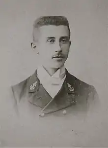 Georges Robert came from a family of manufacturers, who produced high quality hand made lace.[4] In 1893, at the age of eighteen, he entered the École navale, after studying at the Institution Saint-Joseph in Caen, then at the Naval College in Cherbourg. Georges Robert was appointed ensign in 1900 and took part in an eighteen-month campaign in Madagascar.