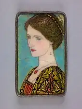 Georgie France was born in Shrewsbury, the elder daughter of William Hanmer France and Frances Emily Cave-Brown-Cave.[1] She studied at the Birmingham School of Art, while there she met Arthur Gaskin, who also studied, as well as taught, there. They married on 21 March 1894.[2] and had two daughters, Joscelyne (b. 1903) and Margaret (b. 1907).[1] Arthur and Georgie Gaskin began their married life living in Acocks Green, Birmingham, before moving to Olton, Solihull.[3] Another move, in 1924, took them to the High Street in Chipping Campden. A few years after Arthur's death in 1928, Georgie moved to West Malling, Kent where she died in 1934.[1] They are buried together, in the churchyard of St James's Church in Chipping Campden.