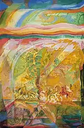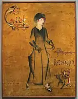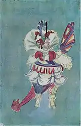 In 1908[15] he made a trip to Italy (visiting Venice, Padua, Florence, Siena and Rome),[17] in 1911-1913 he spent a long time in Paris (where he met and communicated with R. Delaunay),[18][19] in 1913 he took part in the Autumn salon "Storm" in Berlin.[20] In 1913, Yakulov, together with the blue-rozovites Saryan and N. Milioti, illustrated the book of poems "Purple Kifera"[21] V. Elsner, with Sudeikin created the scenery for the theatrical program "Dog Carousel" in the artistic cabaret "Stray Dog" in St. Petersburg.[7]
